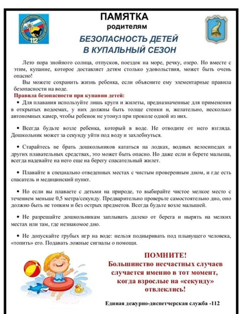 Памятка для родителей 26 Июнь 2023 234 просмотра ~5 мин 63 Нравится Уважаемые родители, будьте бдительны при посещении детьми водоемов. Фотогалерея Поделиться Поделиться: