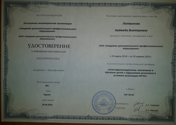 01.09.2023 г. - Учебный центр ООО "Купол" - "Организация и содержание воспитательной работы с детьми с умственной отсталостью (интеллектуальными нарушениями) в условиях реализации ФГОС" - 72 часа